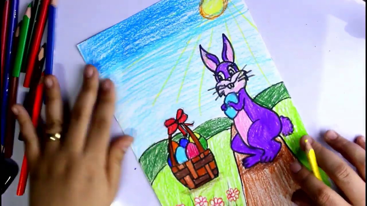رسم شم النسيم وارنب وسلة بيض ملون سهل رسم عيد الربيع خطوة بخطوة