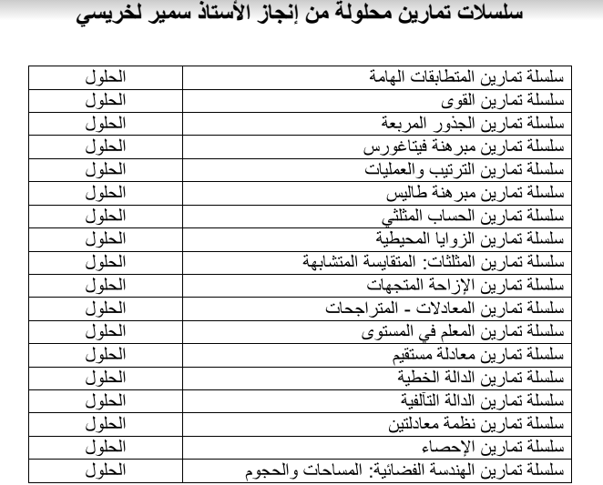 سلاسل تمارين لمراجعة الرياضيات طاسيلي الجزائري