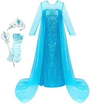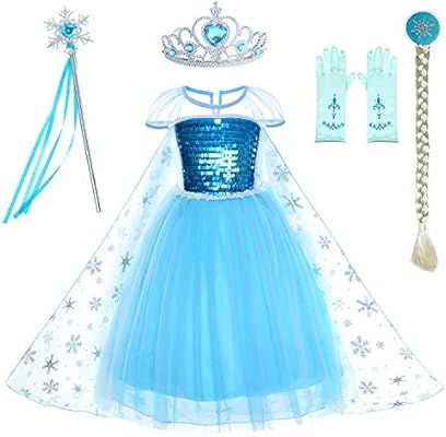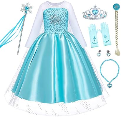 زي أميرة الثلج ايلسا لأعياد الميلاد للفتيات الصغيرات مع التاج