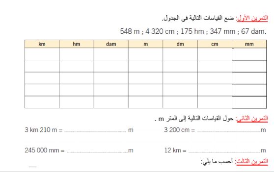 تمارين داعمة في الرياضيات المستوى الثالث ابتدائي